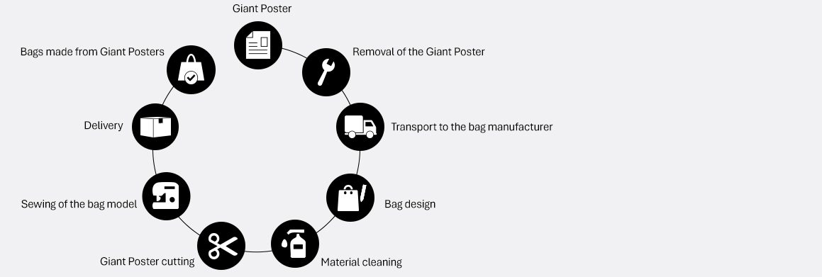 By producing unique, one-of-a-kind bags, you can give your Giant Poster a second life. Whether it’s a cool shopping bag, gym bag or practical bum bag – there are no limits to upcycling!